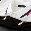 Sleeves: Short sleeves with ribbed cuffs and contrast piping