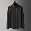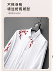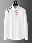 - š¼ Classic white shirt with delicate floral embroidery in red and black.