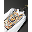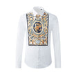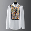 Luxurious White Long-Sleeve Shirt with Ornate Golden Motif