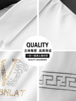 - š Stylish white shirt featuring a subtle Greek key pattern on the chest and sleeve.